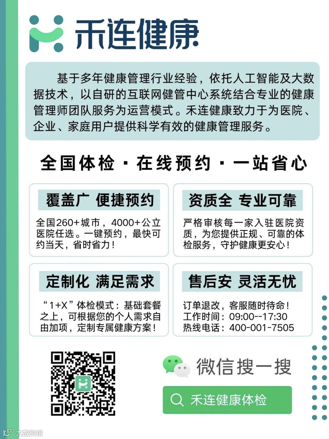 温馨提示:附加服务的具体规则由禾连健康负责解释。您可通过线上预约体检套餐(仅限线上预约用户享受附加服务),体验更便捷流畅的服务流程。