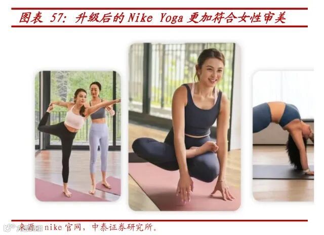 Adidas自2015年起邀请Lululemon前CEO Christine担任女子业务战略顾问,聚焦文胸、T恤、背心、紧身裤和跑鞋五大品类,推出首款女子专用跑鞋PureBOOST X。此后持续丰富产品线,相继发布全新运动文胸系列及adidas Yoga Make Space瑜伽系列。根据其最新五年规划,女子业务预计至2025年保持年均中双位数增长。
