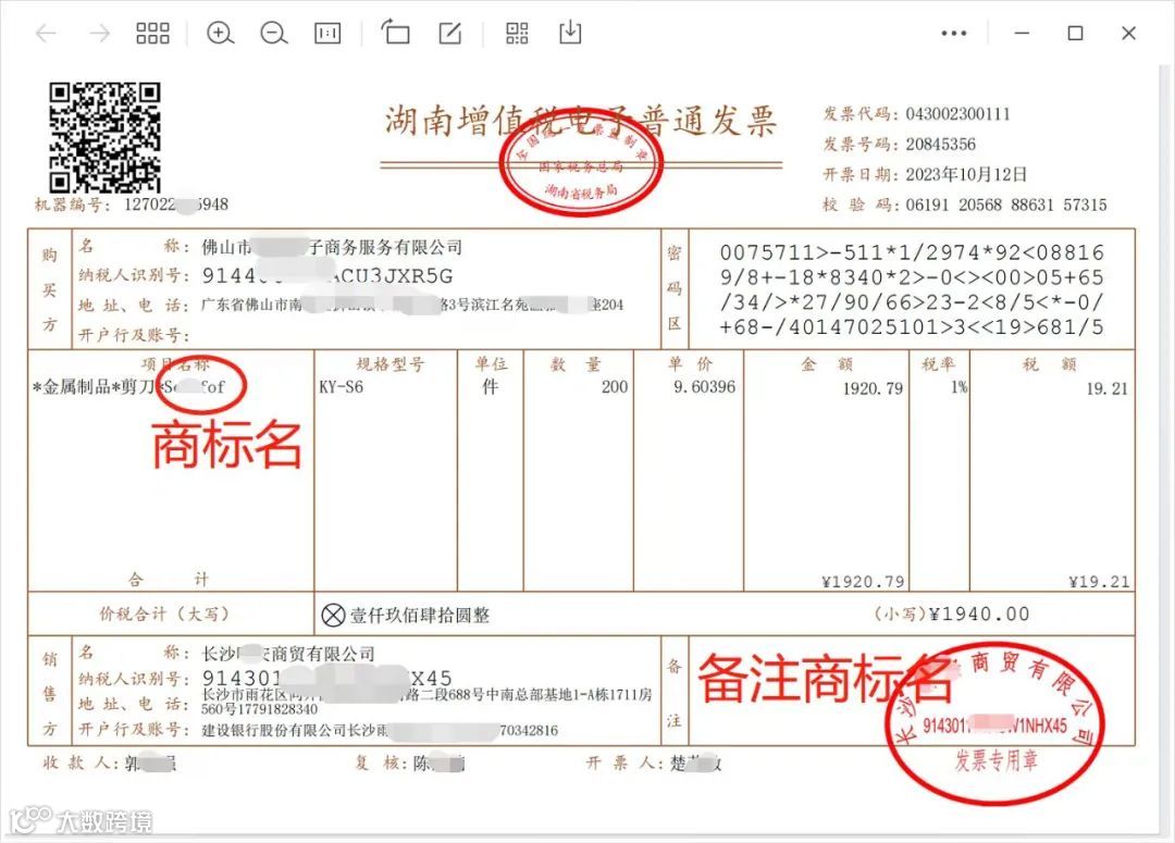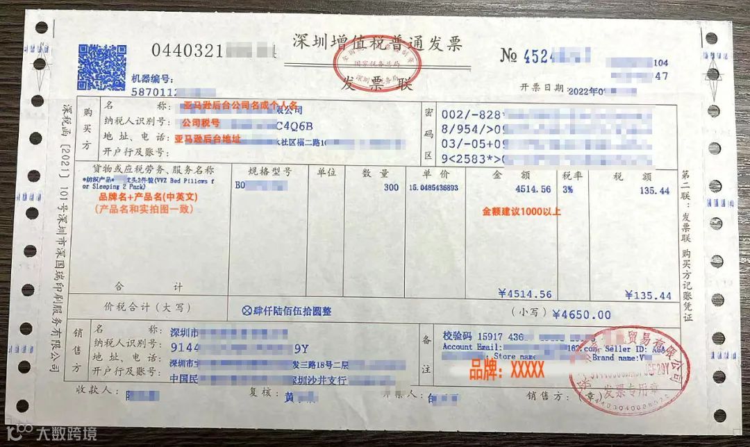 X: 注意的是:开票公司和采购合同的销售方一致,普票专票都可以(注:产品名称后面加上商标名(比如:品牌商标名+产品名(中英文)(产品名和实拍图最好一致,不一致也可以)),数量不要低于50个,金额在500-1万内)发票的备注栏再写上:品牌XXXX。我们没有试过发票合同一起上传的,都是让工厂提供发票。合同和发票模板我也上传给大家看看。