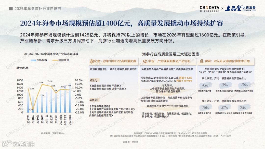 供给侧的产业链整合与产品创新,叠加需求侧六大人群引领的消费升级,正合力推动海参产业迈入高质量发展新阶段。未来,海参将在坚守高端滋补定位的同时,进一步走向日常化、便捷化,实现从“奢侈滋补”到“日常养护”的转变。