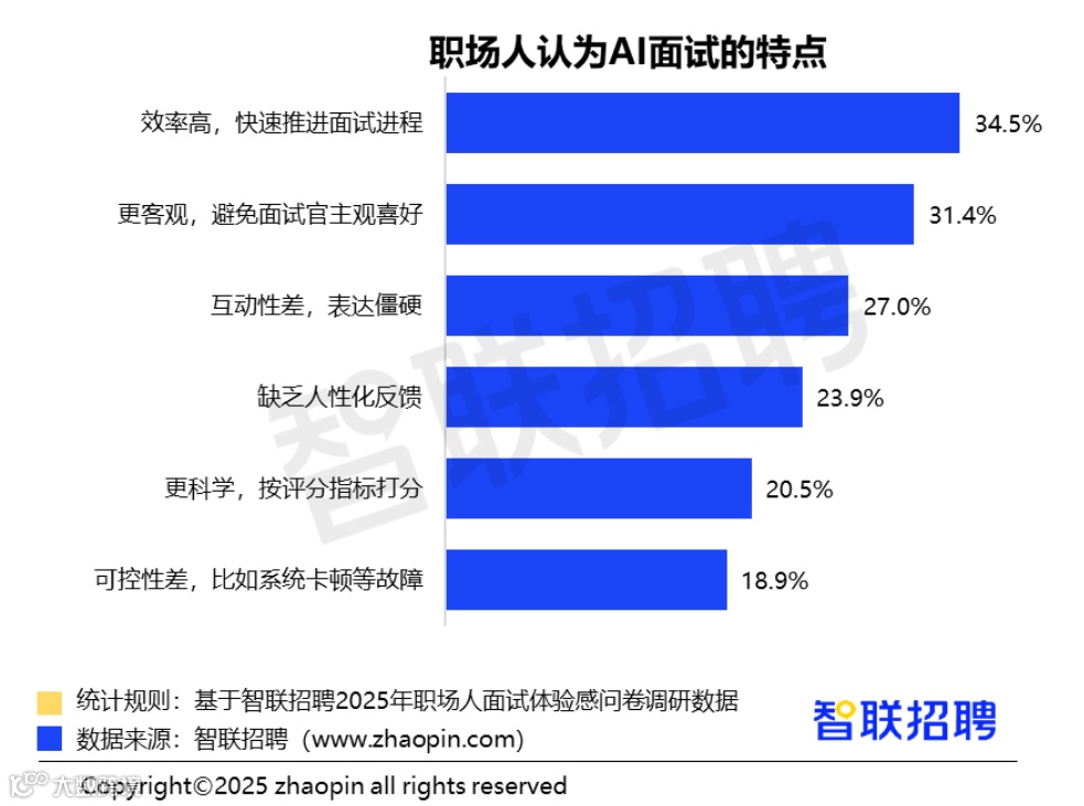 职场人正以更快节奏应对面试挑战,同时坚守真实、透明、尊重的基本底线。无论是对抗“岗位注水”“薪资迷雾”,还是拥抱AI面试新形态,求职者愈发注重信任建立与价值匹配。面试不仅是技能评估过程,更是雇主品牌与人才共鸣的起点。智联招聘将持续关注职场生态变化,助力构建更有温度的招聘环境。