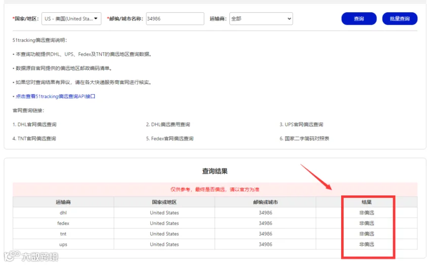 用这个网站查是否偏远,非常准确,有些邮编DHL偏远,但是其他快递不是偏远,特别是自发货发快递用得上,大家试一试:
