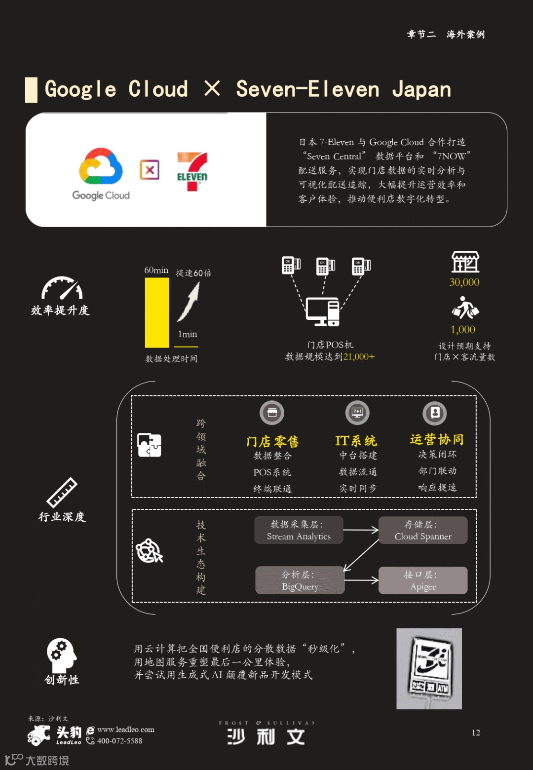 国际层面,多项合作实现突破。Google Cloud与日本7-Eleven合作后,数据处理效率提升60倍,支持大规模门店运营数据分析。AWS与Deye实现低延迟互联,显著提升AI客服响应效率。此外,AWS与TVCMALL、Azure与ASOS等合作在运营效率与用户体验方面取得实质性进展。