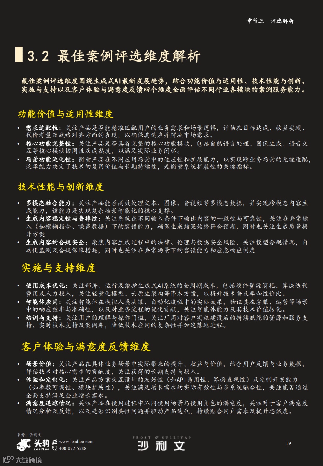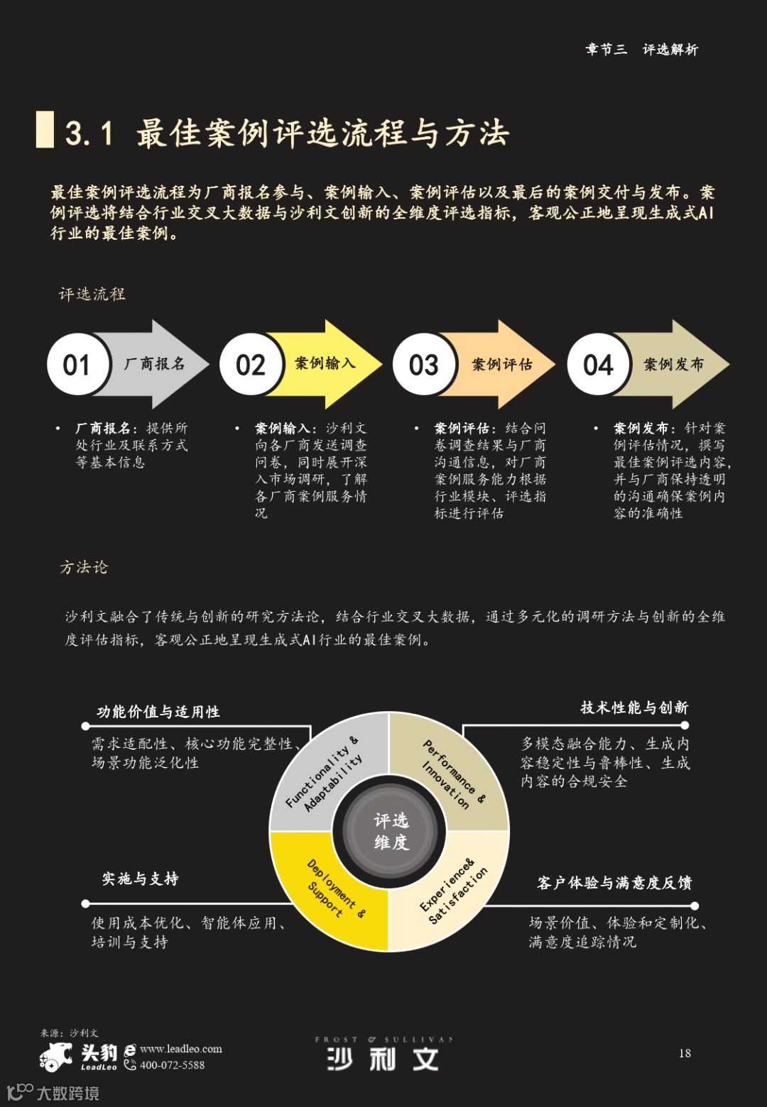 报告构建了四阶段评选流程,涵盖企业报名、材料提交、专家评审到成果发布,评估维度包括功能价值、技术性能等关键指标。2025年重点关注多模态融合能力及智能体(Agentic AI)的四大核心能力发展。