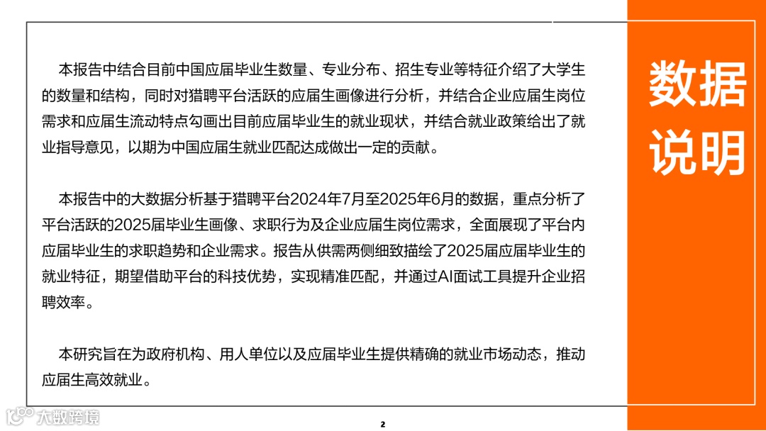 该报告基于猎聘平台数据,对2025届高校毕业生就业政策、供需现状、流动趋势及企业需求等进行了全面分析。