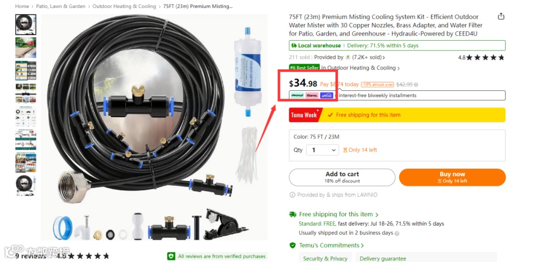 23米,亚马逊的价格:49.99,TEMU价格:34.98,TEMU的卖家还送过滤器,怎么比似乎都是TEMU更优惠。