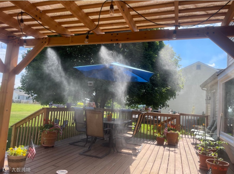 雾化管线和黄铜雾化喷嘴,以及一个实心黄铜3/4英寸NHT软管水龙头适配器,用于户外冷却。产生的水雾能吸收周围区域的热量,提供冷却效果,将温度维持在舒适的23°C/73°F。