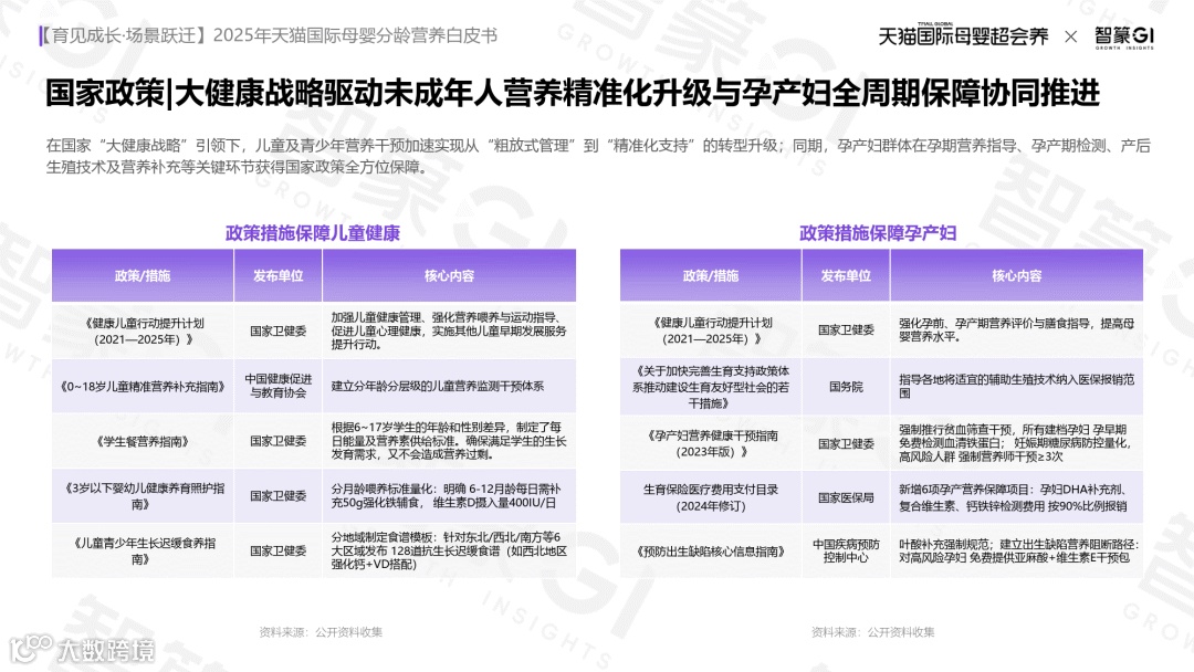 《2025年天猫国际母婴分龄营养白皮书》由天猫国际母婴“超会养”与智篆文化联合发布,聚焦母婴分龄营养市场的趋势演变、人群需求及品类创新,为行业提供权威参考。