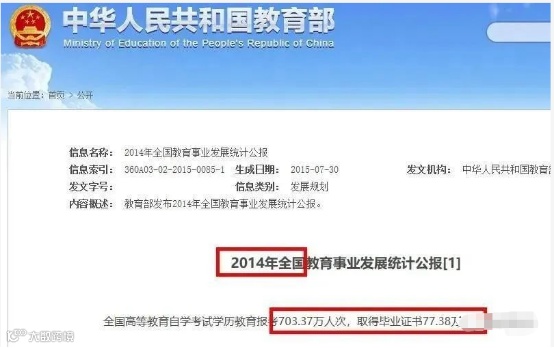 2. 2014年一整年累计报考703.37万人次,毕业77.38万人,通过率11%。