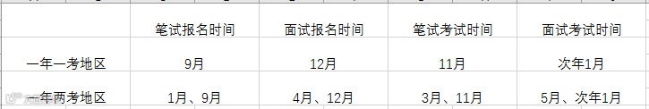每个省份的报名时间会有所不同,具体时间留意本省公告(看本省公告真的很重要了!)另外一年一考和一年两考的地区报名时间也不一样,通常来说一年一考地区上半年不举行考试。