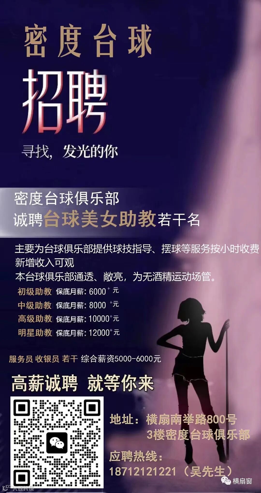 [密度台球俱乐部]招聘:台球助教;收银员;服务员若干名;联系人:吴 先 生 📱18712121221