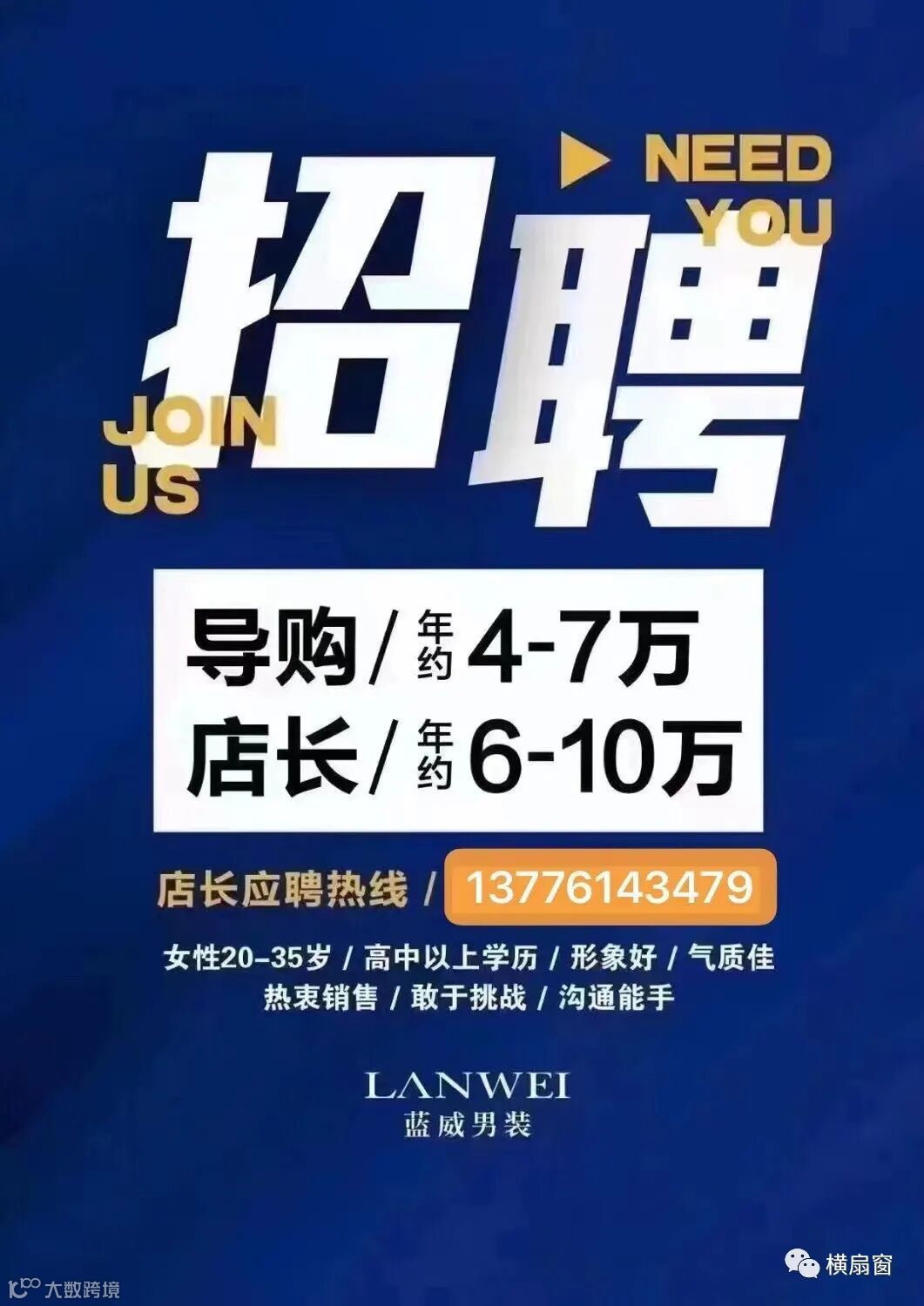 《横扇蓝威男装招聘了》🎉🎉🎉🎉🎉