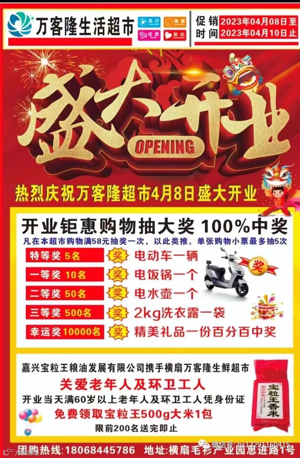 万客隆生活超市横扇店【4月8日】盛大开业,开业期间全场特惠,福利多多优惠多多[烟花][烟花][烟花]