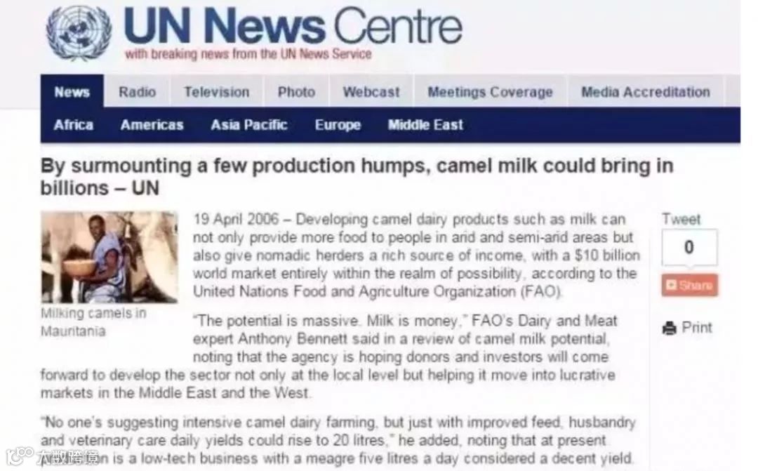聯合国官網報道:骆驼奶——人類找到的“長寿奶”!比牛奶更接近母乳的完美食品!每天一杯,遠離多種疾病!