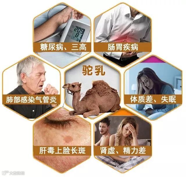 特别是對于有糖尿病、三高、失眠、肠胃炎和五脏虚损、慢性病者,每天一杯驼奶,能快速回复抗體,让身體恢复正常功能与健康。