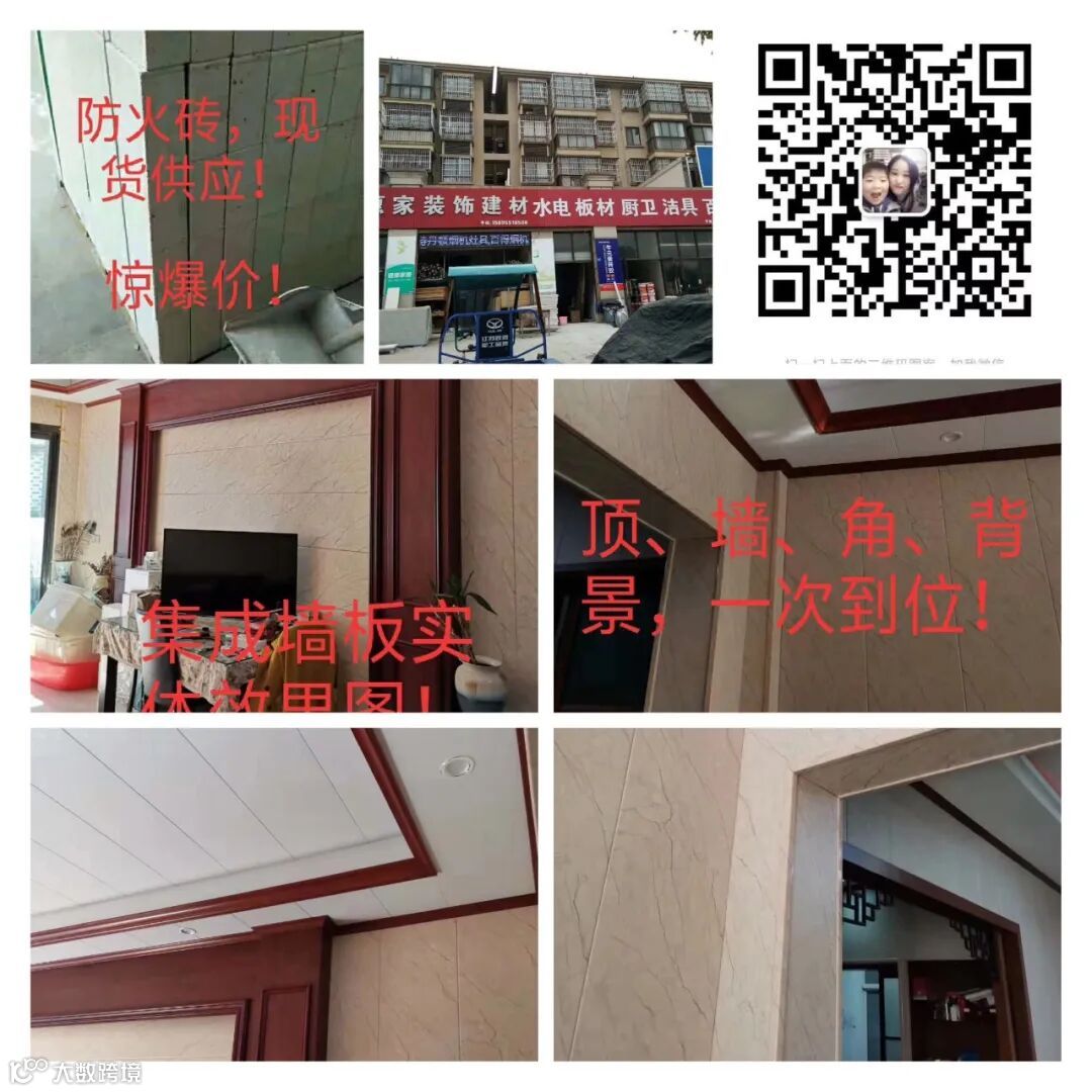 🔥美惠家装饰建材📱15895518508 /18762931070 。本店主要经营:各类板材,兔宝宝板材,竹木纤维集成墙板,石塑墙板,各种造型顶线,包角线,踢脚线,压口线,接头线,包边线等等各类装饰线条,吊顶扣板,厨卫铝扣板,各类油漆,水电,厨卫,洁具等所有室内外装修材料!砌砖专用胶泥,内外墙腻子粉,各类防水等辅料!现货供应!送货上门!价格优惠!本店承接各种室内外所有装修工程!免费上门设计!咨询购买:15895518508文女士,承接工程:18762931070张和平。地址:吴江区横扇镇渔湾大道文广路美惠家装饰建材39号.