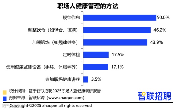 面对日益严峻的亚健康挑战,个人健康管理已非选择题,而是职场生存的必要条件。从调整作息、均衡饮食到适度运动,每一个微小改变都是对健康的积极投资。企业也应承担起健康支持责任,通过提供体检、健康餐饮、弹性制度等实际举措,助力员工实现可持续发展。智联招聘将持续关注职场健康议题,推动构建以人为本的职场生态。