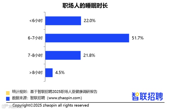 - 51.7%职场人日均睡眠6-7小时,00后饮食习惯更不规律