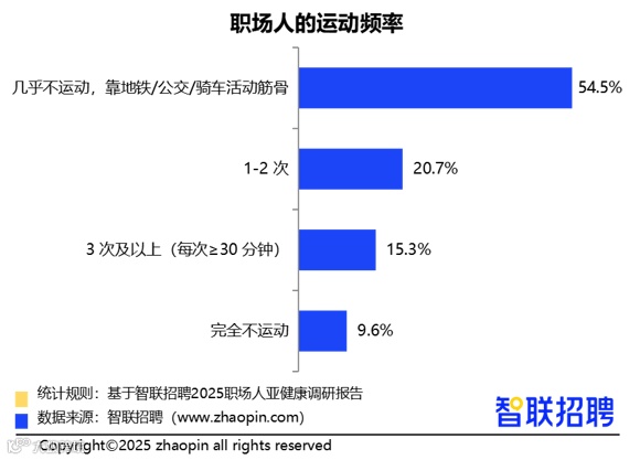- 超五成职场人几乎不运动,通勤成为主要活动来源