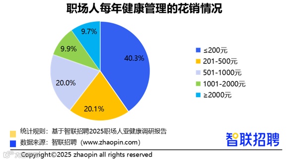 - 40.3%职场人年健康支出不足200元,期待企业提供体检与健康餐