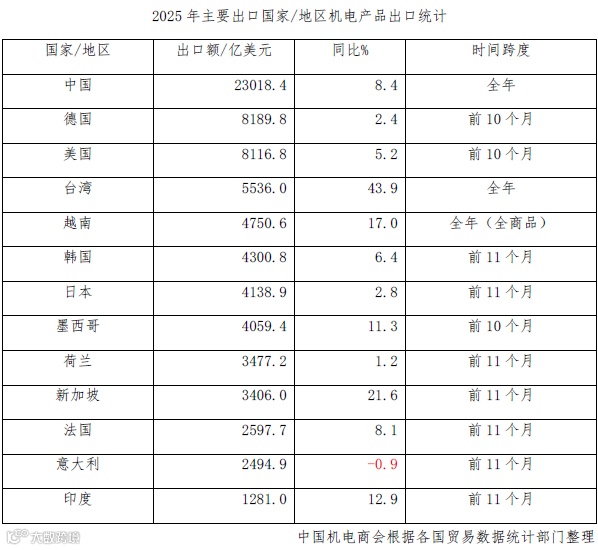 2025年我国机电外贸运行的结构性特征