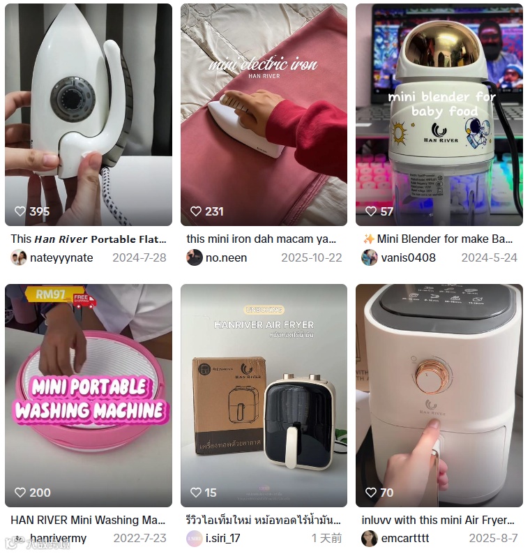 不同于多数企业首选欧美市场,HAN RIVER将目光投向高速增长的东南亚蓝海市场。调研显示,中国品牌已占据当地约70%的小家电市场份额。品牌率先以印尼为突破口,迅速入驻Shopee、Lazada、TikTok等主流电商平台。