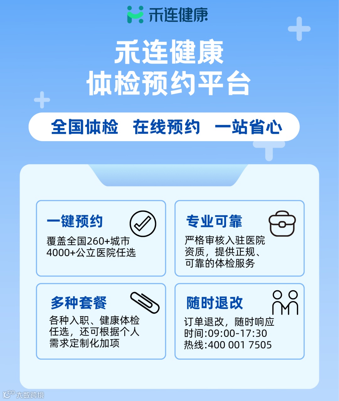 无论是入职体检、健康证、公务员体检、教资体检、全身健康体检、深度体检检查、女性妇科套餐、早癌筛查、专项体检、胃肠镜体检、青年体检、中老年体检、父母体检、高端体检等套餐均可预约!