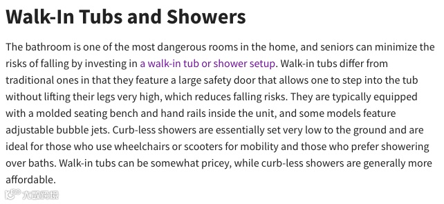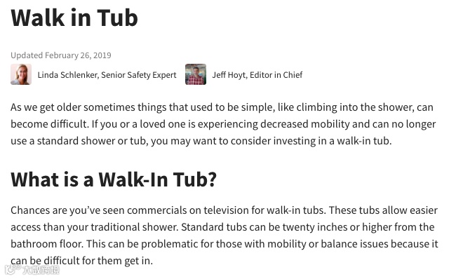 图:点击Safety板块步入式浴缸内置链接后,所跳转页面