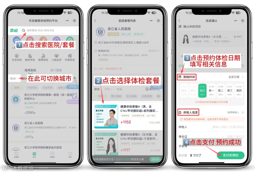 可通过禾连健康体检预约平台预约体检