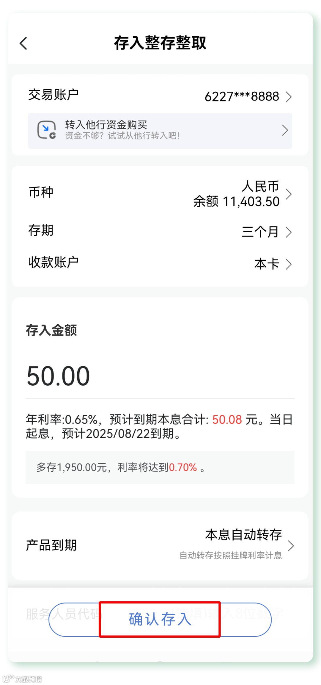 整存整取起存金额是多少?