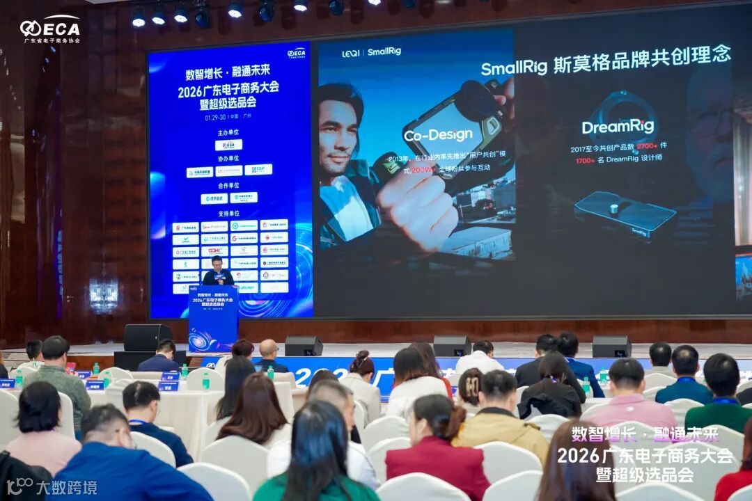 在2026广东电子商务大会暨超级选品会上,乐其创新SmallRig首席营销官张宁分享了品牌深耕影像器材16年的跨境成长经验。如今,SmallRig斯莫格已从单一影像配件品牌发展为覆盖相机、手机影像、灯光、电源、麦克风等全场景解决方案的全球品牌,服务对象涵盖好莱坞制片厂到普通Vlog创作者。