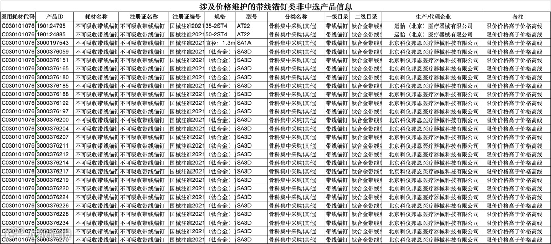 根据《通知》,浙江针对第四批耗材国采中的“带线锚钉类非中选产品”开展挂网限价维护工作,并公布8类产品的挂网价格高线,区间为1359.6元至2405.48元。