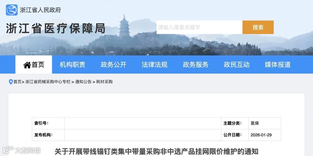 近日,浙江医保局发布《关于开展带线锚钉类集中带量采购非中选产品挂网限价维护的通知》(简称《通知》)。