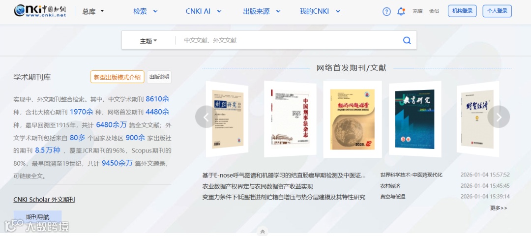 中国学术期刊数据库的期刊资源包括中文期刊和外文期刊,你可以在里面找到自然科学、工程技术、医药卫生、农业科学、哲学政法、社会科学、科教文艺等各个学科的学术期刊全文。相比其他数据库,它在科技成果、地方志等特色资源上更具优势,支持多维度组合检索和文献分析,跨学科研究找资料首选它~