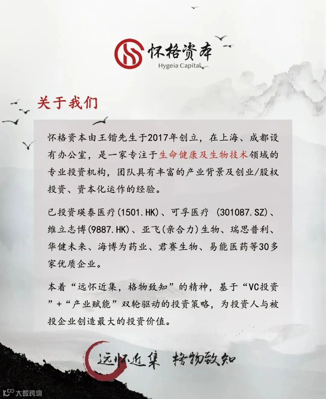 定位于生命健康及生物技术领域的精品创投