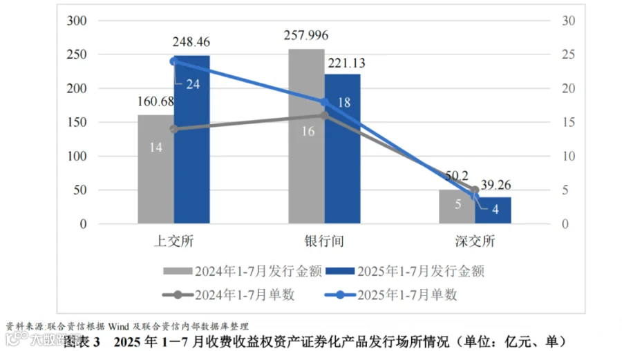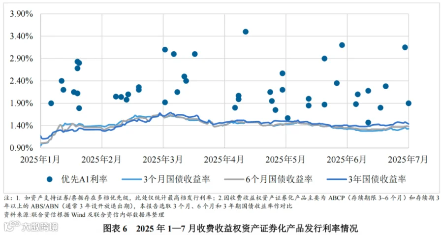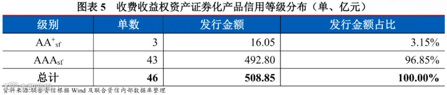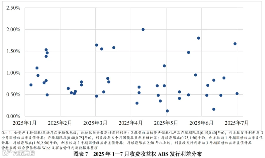 2025年1—7月发行的收费收益权资产证券化产品中,AAAsf级证券发行规模占比达96.85%,信用资质整体较高。
