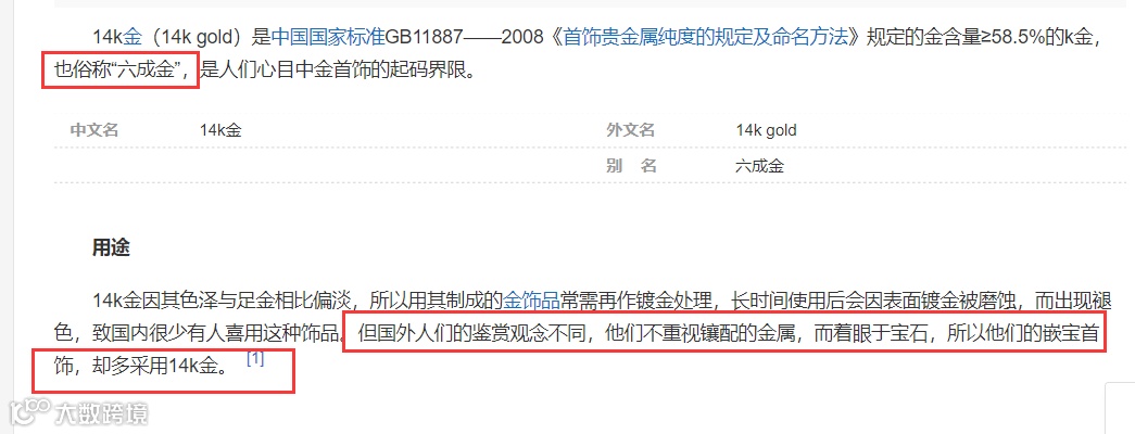 14K 金我跟你讲一讲是什么样子?我百度了一下,看图:
