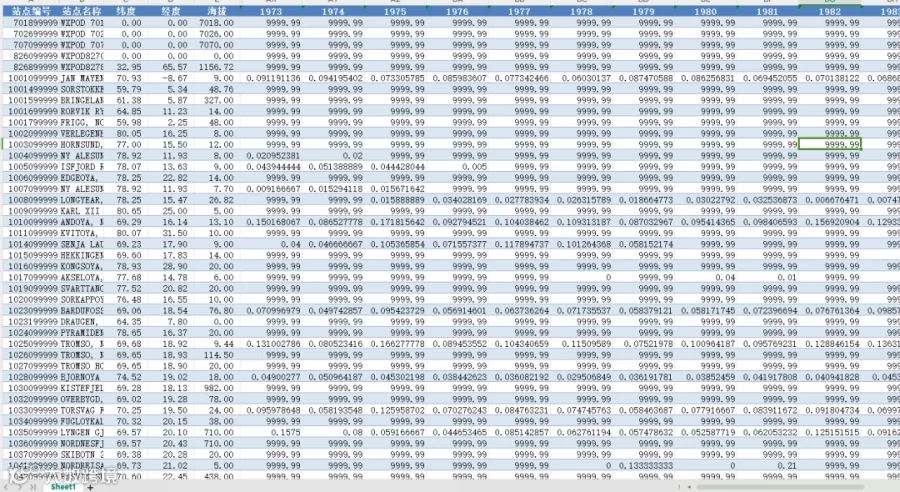 数据包含全球气象站点逐日降水记录,年均值由总降水量除以当年天数计算得出,无效值标记为9999.99,2024年数据截至7月20日。中国区域站点可通过名称筛选(缩写CH)。其中PRCP_1929_1955等三个表格为日降水数据(因体量较大分表存储),year_PRCP_1929_2024为年均降水数据。