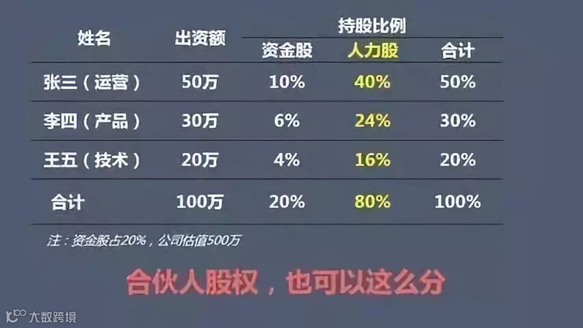 按照以前的分配模式,如果公司启动资金是200万,出资100万的股东即便不参与创业,占股50%是常识;在现在,只出钱不干活的股东“掏大钱、占小股”已经成为常识。在过去,股东分股权的最大变量是钱;而现在,人是股权分配的最大变量。股权分配已经从金本位演变到现在的人本位。