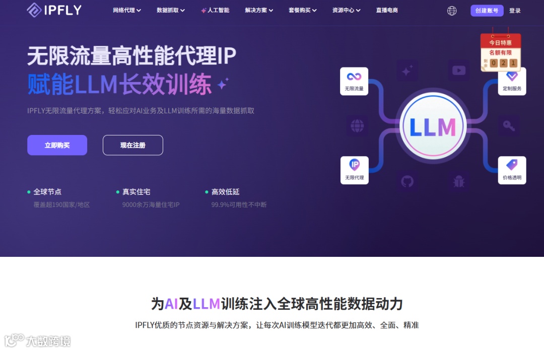 当前已有专注海外服务的厂商推出面向AI场景的成熟方案,如IPFLY提供的动态代理IP服务,具备充足的海外IP资源池、灵活的区域调度能力和API自动化对接功能,可有效满足AI团队在模型训练前的数据准备需求。