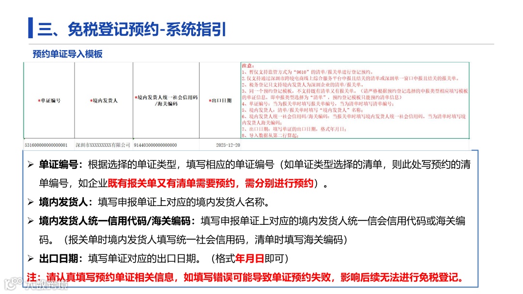 其次,登记时效方面要求,企业须在出口货物结关后,至少提前2个自然日进行预约登记,系统将于预约后的第3日(T+2)开放数据确认功能。