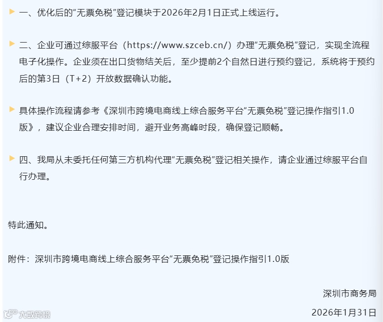 深圳此次政策落地并非孤立行动,而是全国跨境电商“无票免征”试点扩围的重要一环。