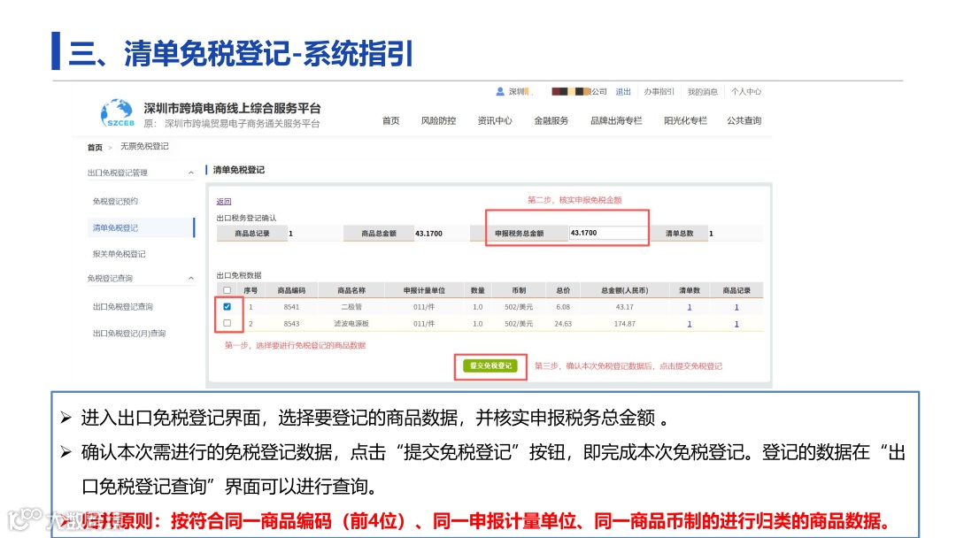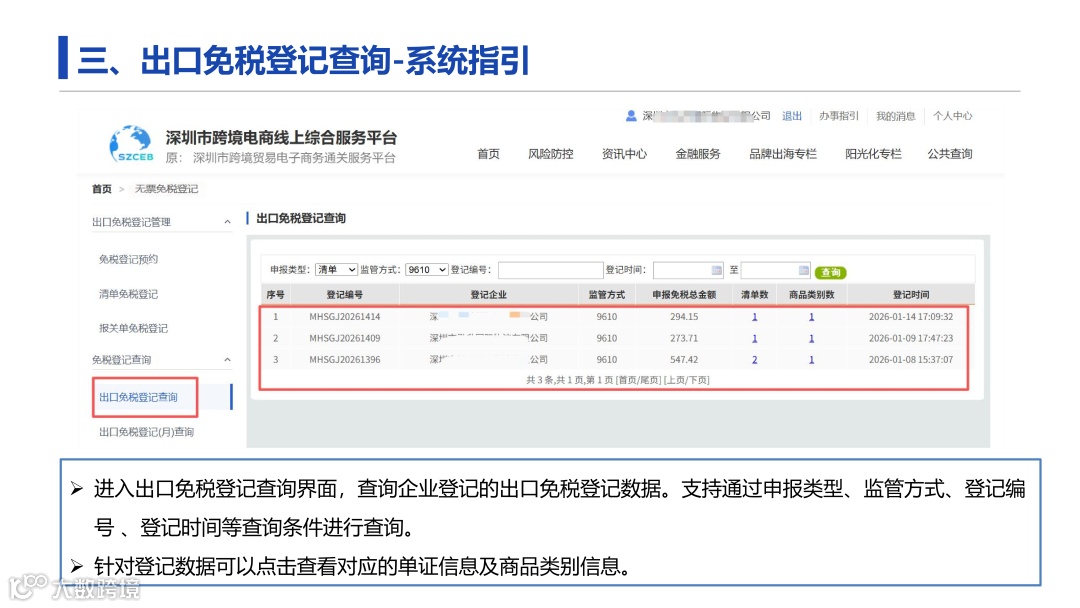 目前,跨境电商企业可通过综服平台https://www.szceb.cn/,办理“无票免税”登记,实现全流程电子化操作。