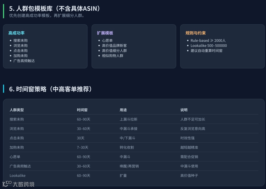 对于高转化潜力的上层人群(如搜索、浏览),可适当放宽时间范围;而加购人群务必追求“短而准”。