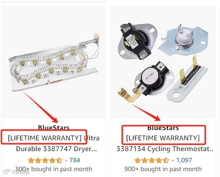 就有卖家,他把 Lifetime Warranty放在 title 最前面。