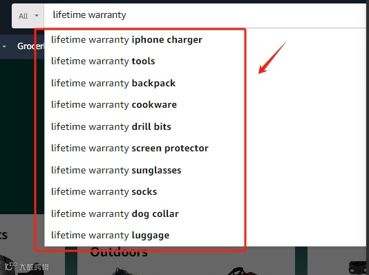 亚马逊上搜 Lifetime Warranty,下拉框联想出很多词,大家可以看一下。