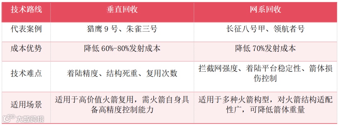 • 垂直回收路线:以深蓝航天、中科宇航为代表,采用类似SpaceX的垂直回收技术。深蓝航天星云-1火箭在2024年完成百米级垂直回收试验,2025年12月长征八号甲完成海上网系回收验证,但尚未实现大规模商业化应用。 -