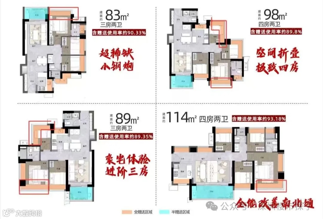 - 户型实用率高(83㎡三房得房率92%),全屋飘窗设计,动静分区合理,满足刚需至改善家庭需求。