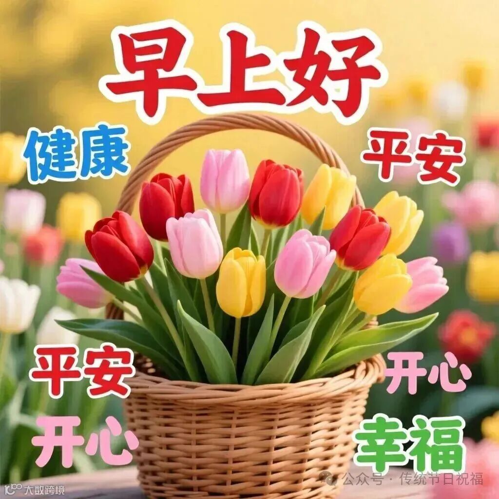 12、留下昨天的微笑,送上今天的祝福,期待明天的美好,让幸福健康同在,让吉祥平安相随!阳光洒满你,心情满满的迎接新的一天,早安朋友!