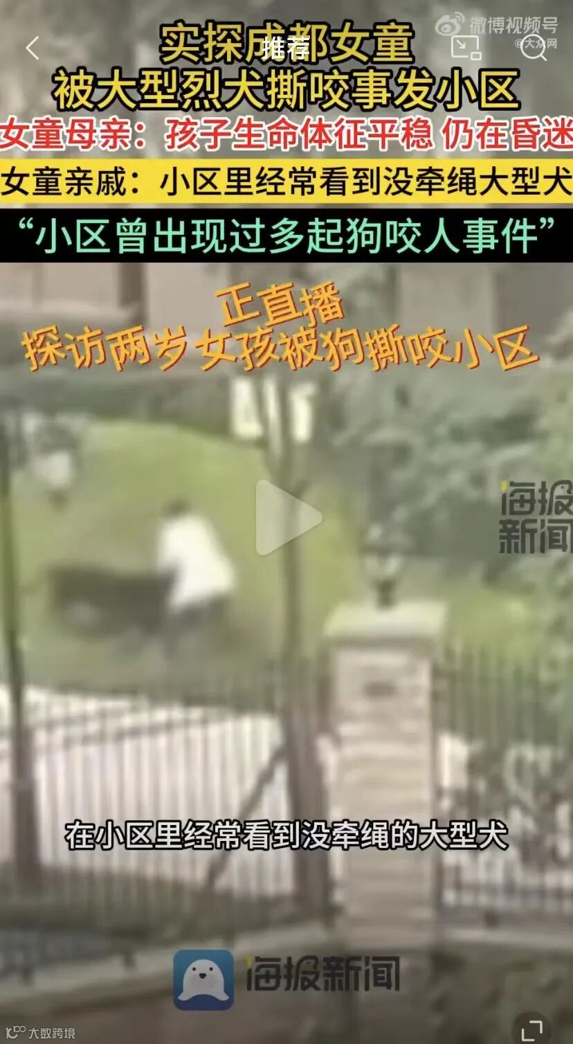 10月16日,四川省崇州市一小区内,一名2岁女童随母亲下楼玩耍时,遭一只未牵绳的罗威纳犬持续撕咬数十秒,导致全身严重受伤,目前仍在四川大学华西医院接受治疗。事件引发公众对文明养宠与城市犬只管理的广泛讨论。